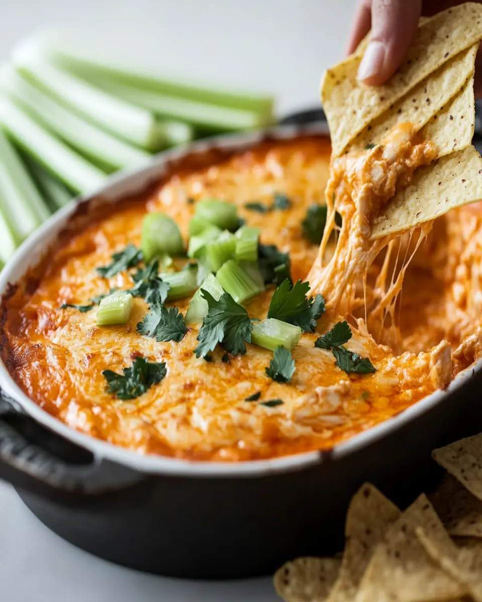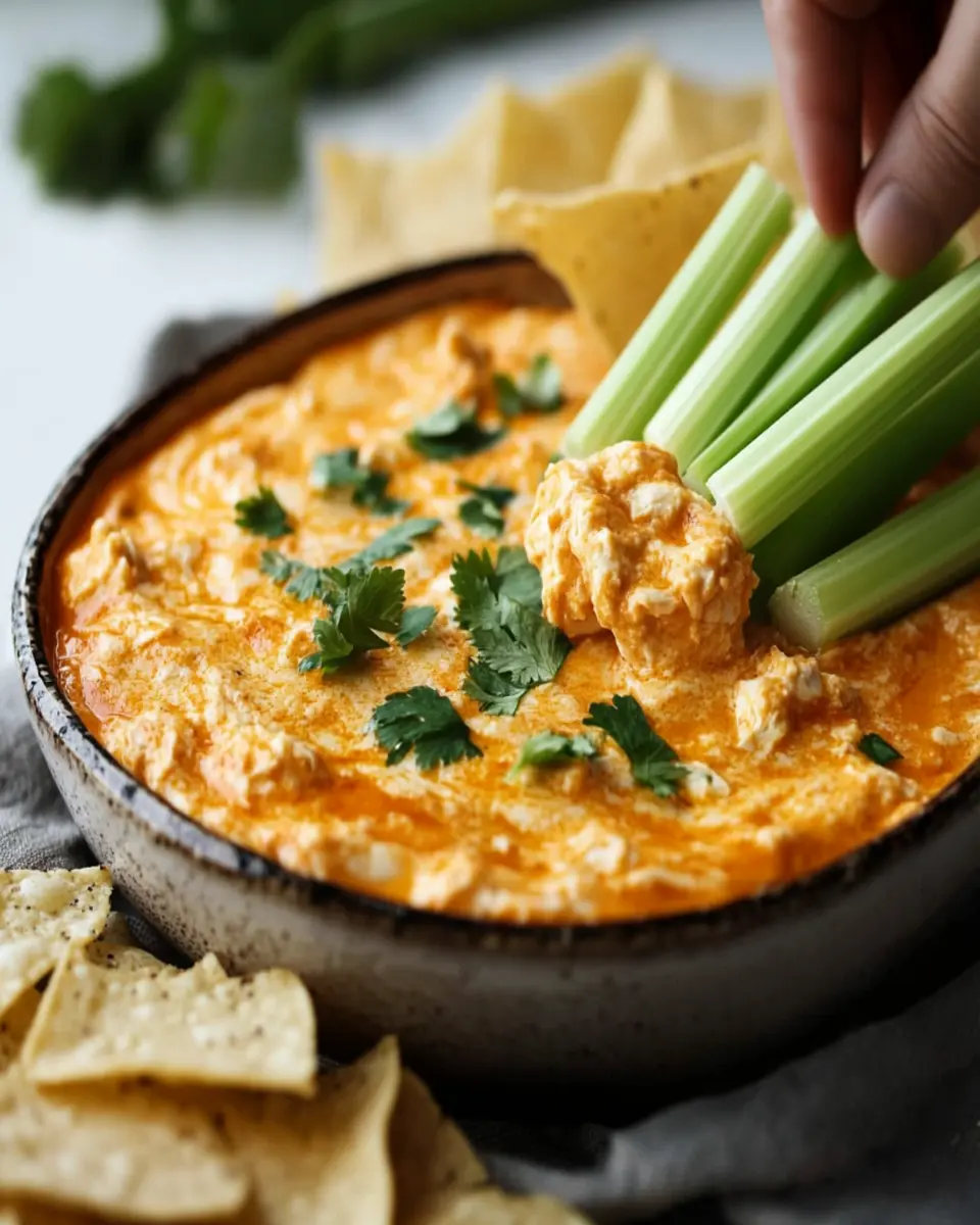 For an elevated presentation, serve the dip in a hollowed-out bread bowl, surrounded by bite-sized pieces of the bread for dipping. This not only looks impressive but also adds to the flavor experience. You can also drizzle a bit of extra buffalo sauce on top before serving to entice your guests visually and give them a hint of the heat to expect.