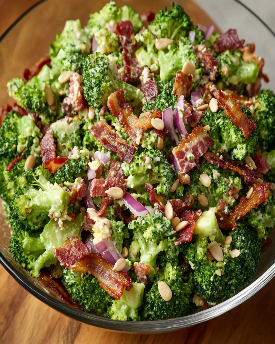 Not only is this salad a treat for your palate, but it’s also packed with nutrition. The fresh broccoli offers a wealth of vitamins, while the protein from bacon and cheese ensures you feel full and satisfied. Plus, with variations like using Greek yogurt for a lighter dressing, you can easily adjust it to fit your dietary needs.