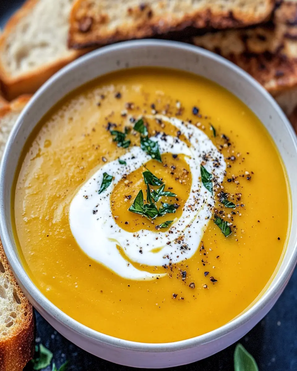 This creamy butternut squash soup is rich, flavorful, and perfect for fall. It’s an easy recipe that can be made in under an hour.