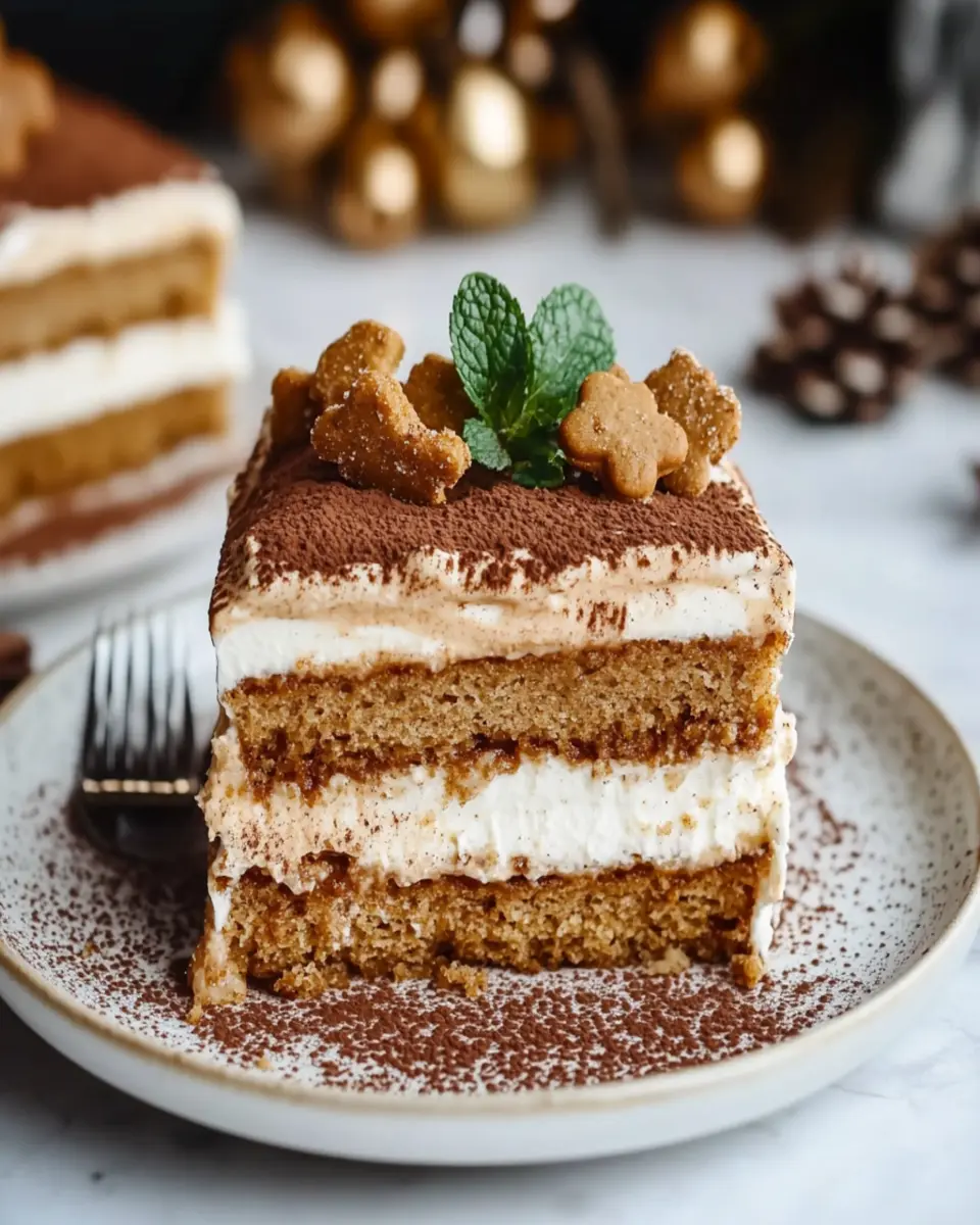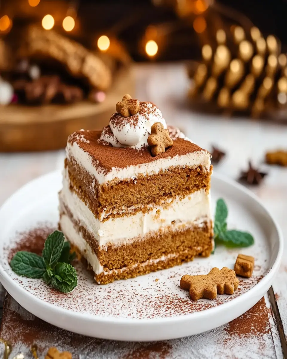 A festive twist on the classic tiramisu with flavors of gingerbread.