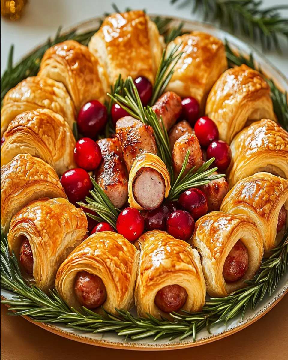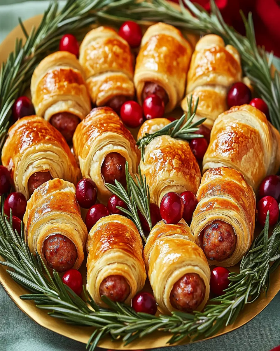 A festive twist on the classic pigs in a blanket, perfect for holiday gatherings!