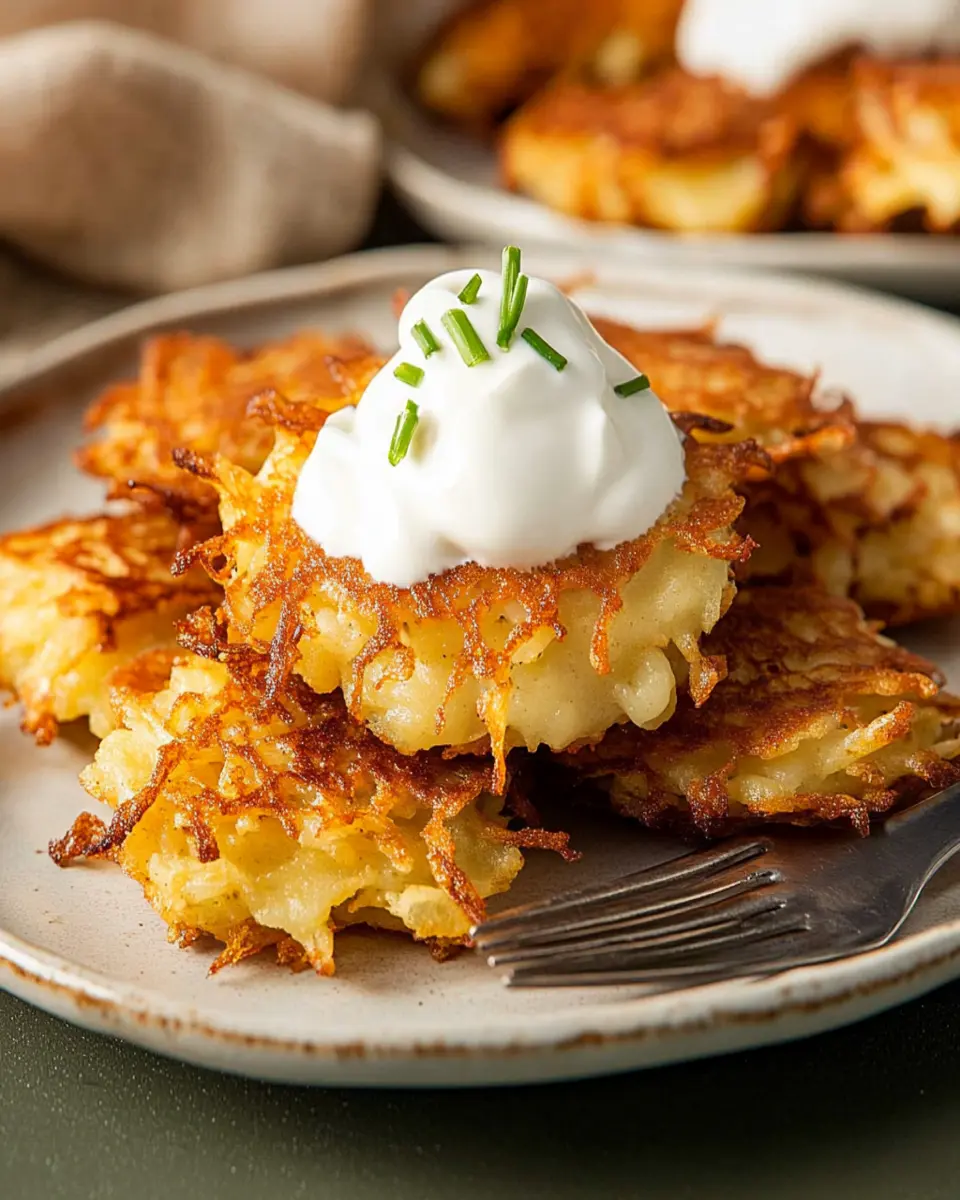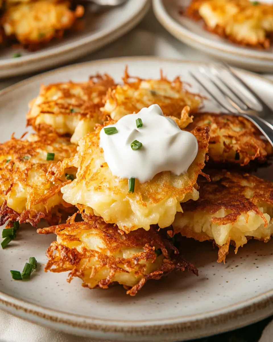 Latkes are traditionally served with applesauce or sour cream. You can also get creative with toppings like yogurt with herbs, spicy sauces, or even a fresh salad to balance the richness of the latkes.