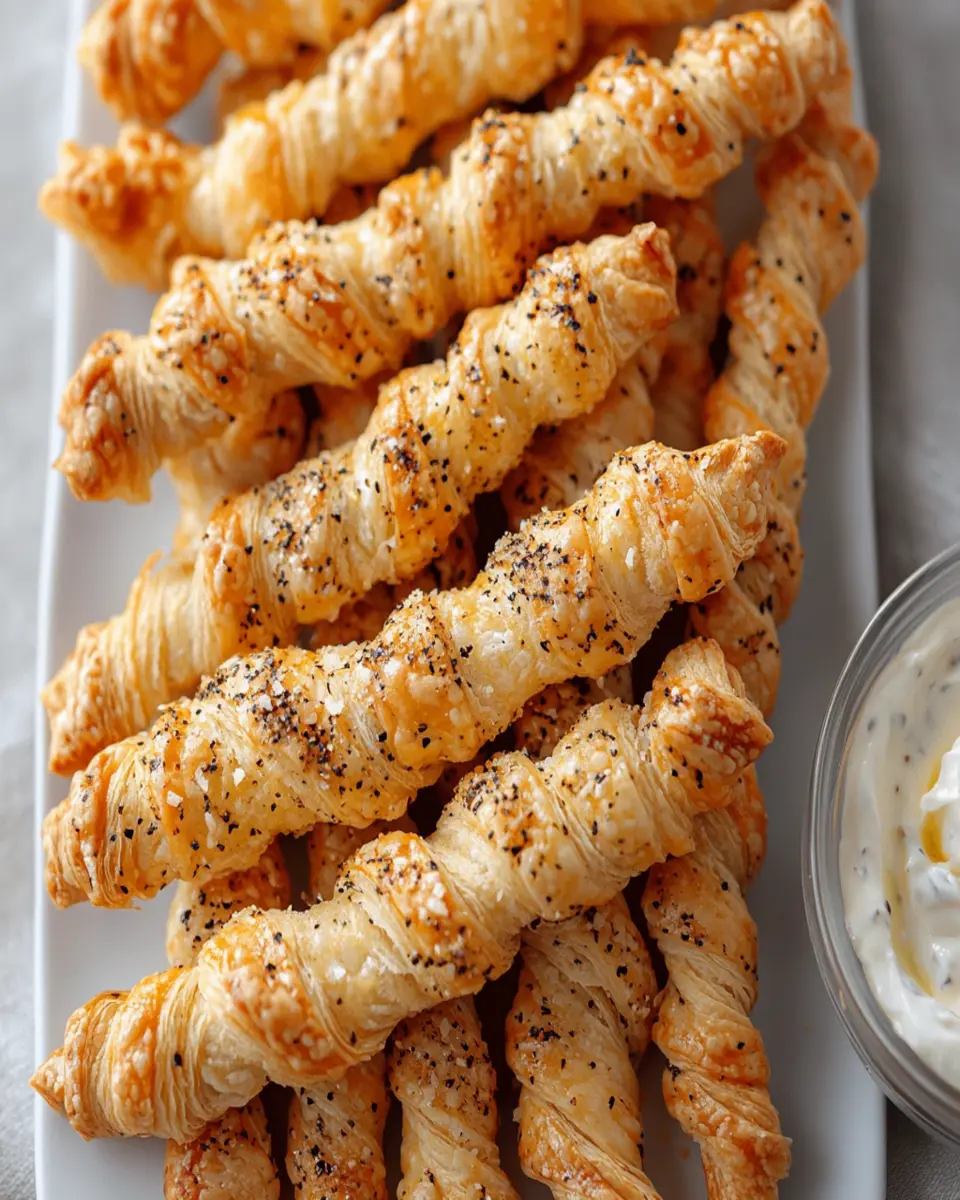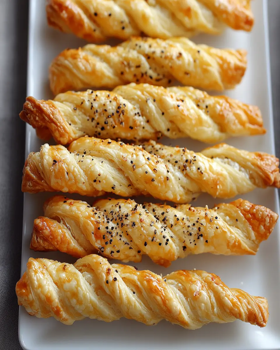 In conclusion, Puff Pastry Cheese Straws with White Cheddar & Black Pepper are a delightful and versatile appetizer that is perfect for any occasion. Their crispy texture and rich flavor make them a favorite among food lovers, while their simplicity ensures that even time-pressed young professionals can whip them up with ease. These cheese straws are not just a treat but also an opportunity to impress your guests. So, gather your ingredients, follow the steps, and enjoy the delicious results. Remember to cook, save, share, or comment on your experience with this fantastic recipe!