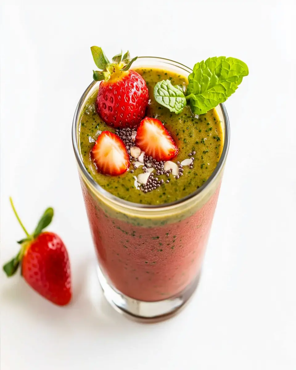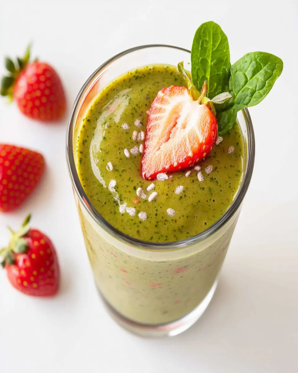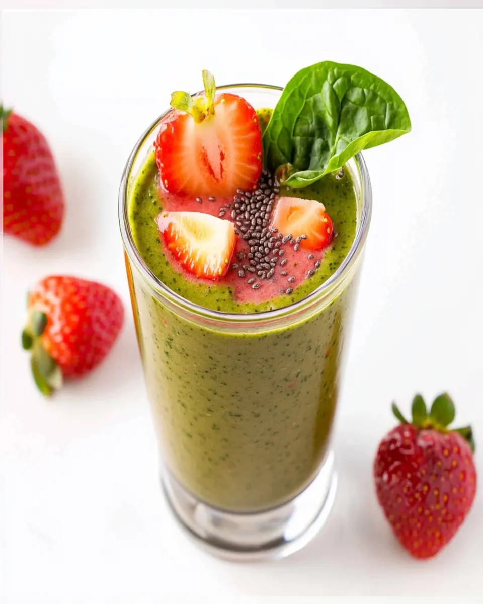 A refreshing and nutritious smoothie made with fresh strawberries and spinach.
