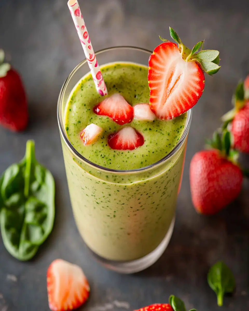 A refreshing and nutritious smoothie made with fresh strawberries and spinach.