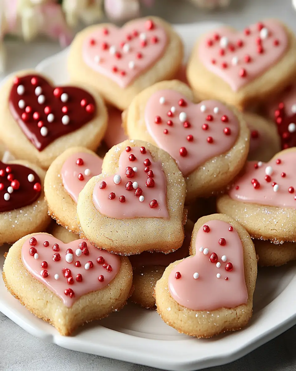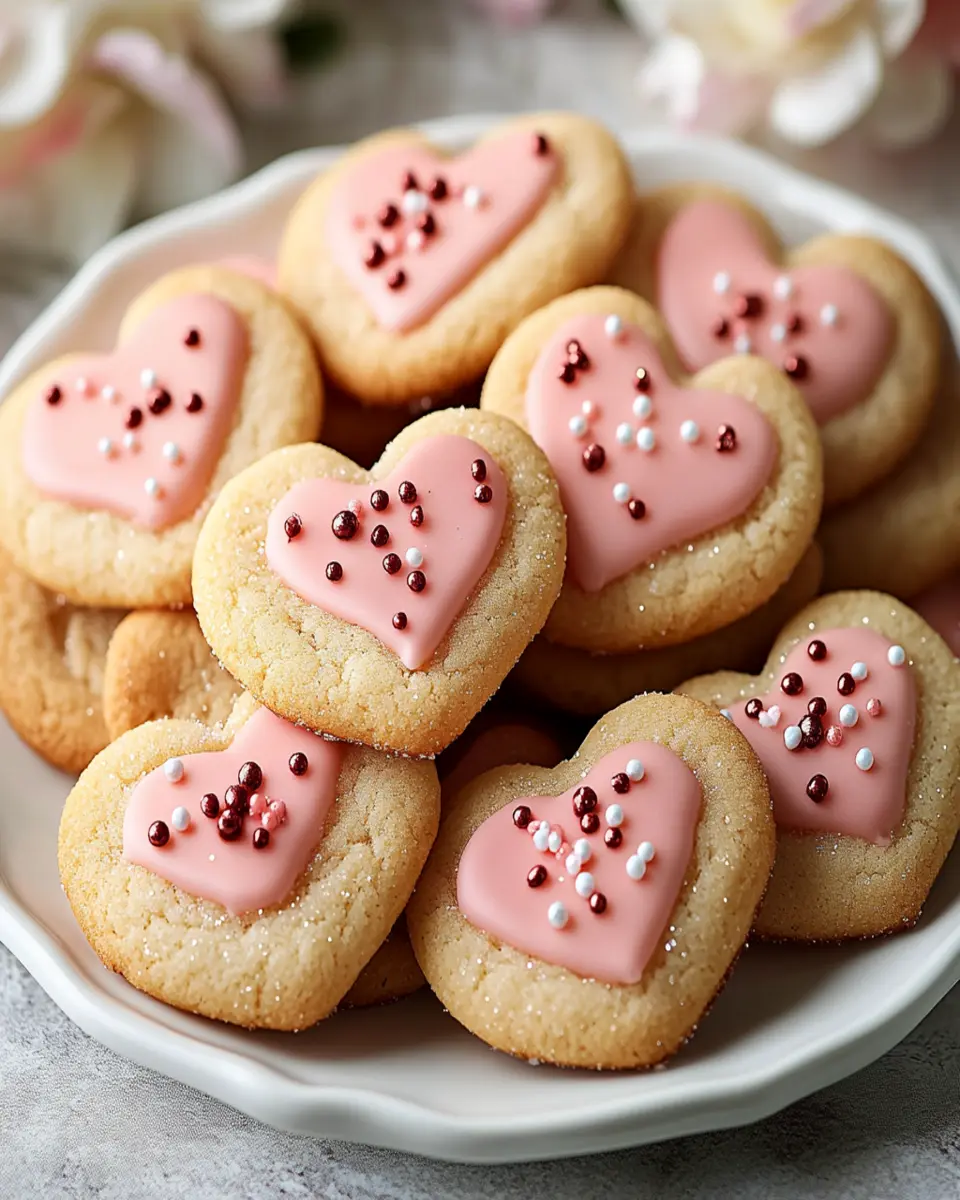 Delicious and festive heart-shaped sugar cookies perfect for Valentine’s Day.